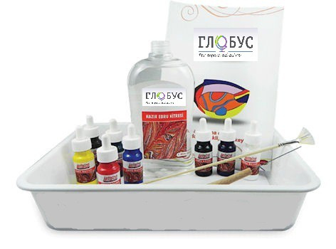 • 5 флаконов красок по 30 мл. (цвета: черный, белый, синий, желтый, красный)