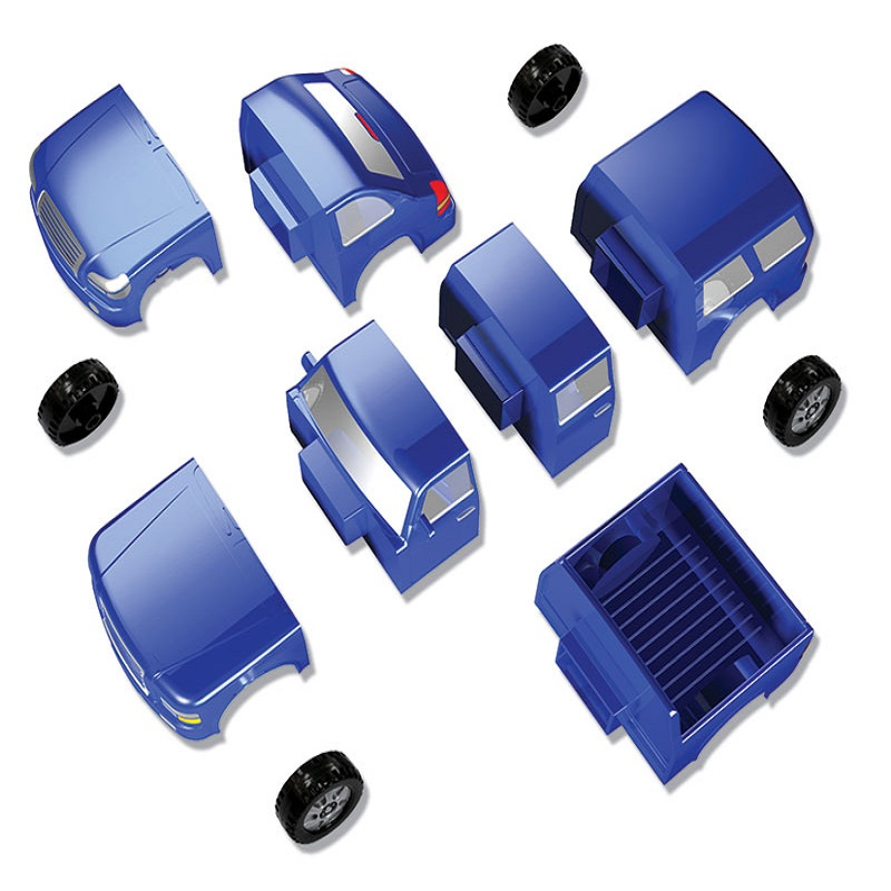 Система магнитного соединения деталей конструктора делает сборку легкой и позволяет объединять детали конструктора и разделять их снова и снова, создавая большое количество новых транспортных средств.