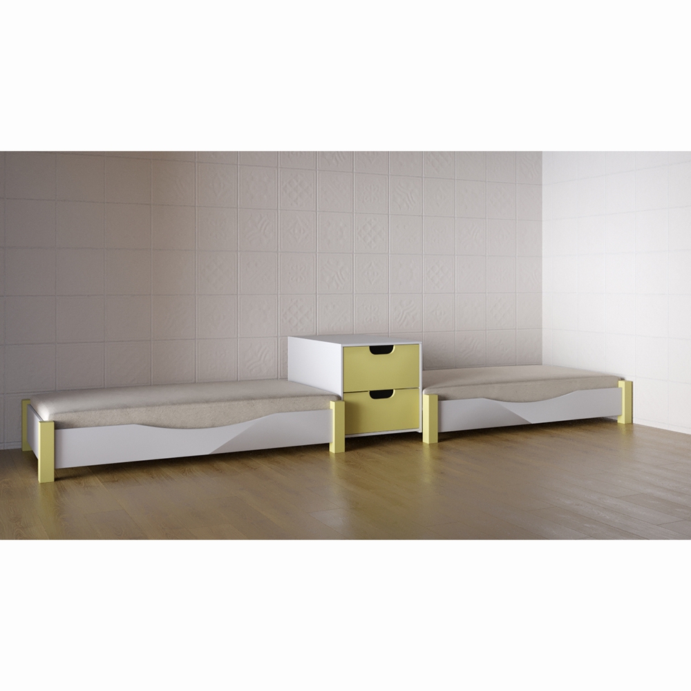 Кровать детская двухместная «Луна» предназначена для детей от 3 до 10 лет. имеет 2 спальных места, между которыми есть небольшая тумбочка с 2-мя ящичками. Выполнена в нейтральной цветовой гамме, что позволяет использовать ее в помещении с любым интерьером. Конструкция кровати надежна и прочна – это гарантирует безопасную эксплуатацию. Кровать представленной модели выполняет роль спального места в группах детских садов, яслях. При помощи комплекта таких кроваток можно стильно и современно оформить спальную комнату для детей.