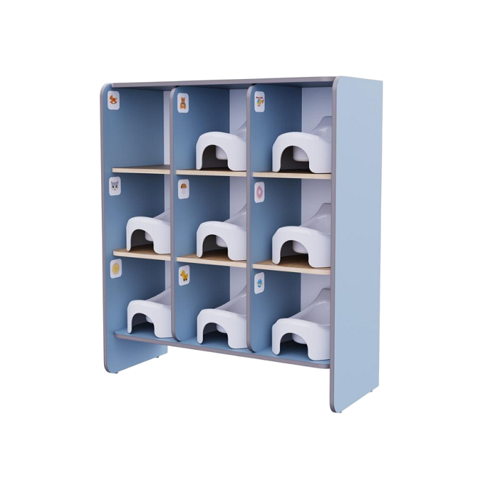 Это функциональное решение для организации пространства в группах детского сада. Стеллаж поможет поддерживать порядок и чистоту.
