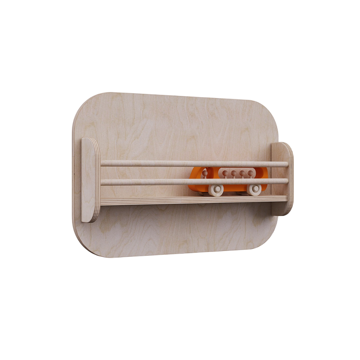 Полка для хранения дидактических, развивающих и рабочих материалов для демонстрации и обеспечения более простого и быстрого доступа. Горизонтальные перекладины препятствуют падению с полки элементов ее наполнения. Конструкция является не только практичным решением, но и стильным и экологичным украшением пространства.
