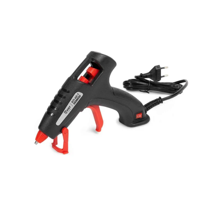 Клеевой пистолет предназначен для быстрого и надежного склеивания керамики, фарфора, пластика, металла, кожи, резины, дерева, картона и других материалов с помощью термоплавкого клея.