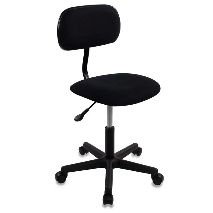 Кресло обтянуто черной износоустойчивой тканью. Материал надежно впитывает влагу и не истирается в течение длительного времени.
