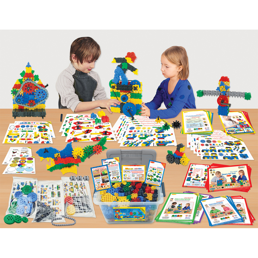Конструктор рассчитан на детей возраста 5-9+, способствует развитию интеллектуальных способностей в процессе познавательной деятельности и вовлечение в научно-техническое творчество. В набор конструктора STEM 480 деталей входят 27 двусторонних листов формата А3 с инструкциями разных уровней сложности по сборке механических устройств, включающих шестеренчатые, ременные, цепные, реечные передачи, 5 наборов рабочих карт в помощь педагогам для подготовки и проведения занятий, стикеры и двусторонние разрезные карточки.